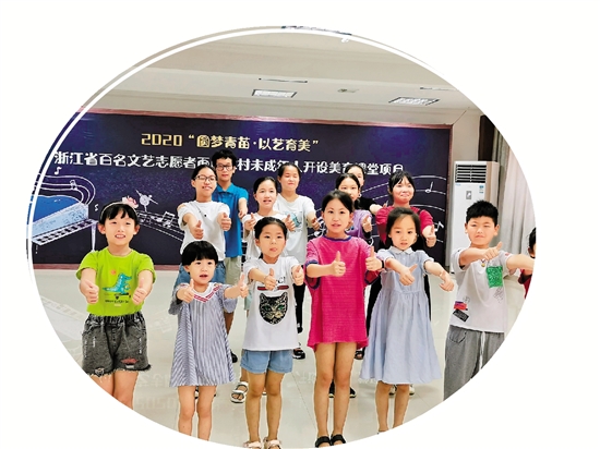 在杭州市桐庐县富春江镇孝门村文化礼堂上课的孩子们。