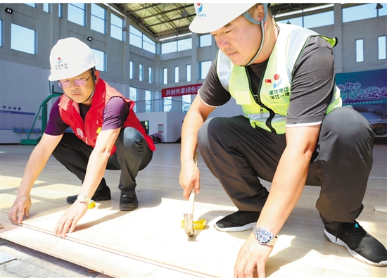 “再生地板”在淳安县汾口中学体艺馆完成铺设安装。 拍友 唐家凯 摄