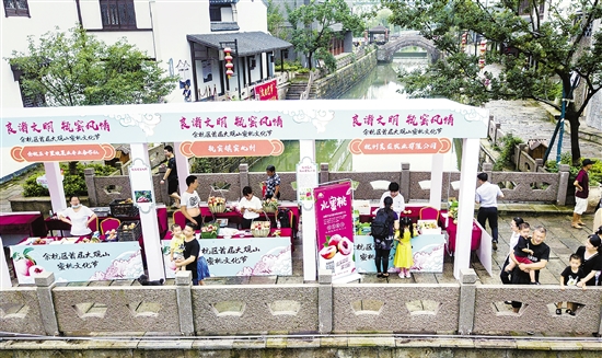 今年,余杭区首届大观山蜜桃节在瓶窑老街举行,吸引了众多游客来寻味。