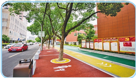 鄞州区栎木小学外的人行道,被市民誉为“最美上学路” 吴维春 摄