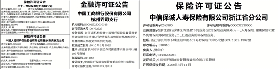 保险许可证公告