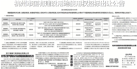 根据国家有关法律、法规的规定,依据城市规划,经杭州市人民政府批准,杭州市规划和自然资源局萧山分局对下列国有建设用地使用权采用招标方式出让。现将有关事宜公告如下: