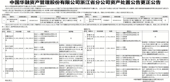 中国华融资产管理股份有限公司浙江省分公司资产处置公告更正公告