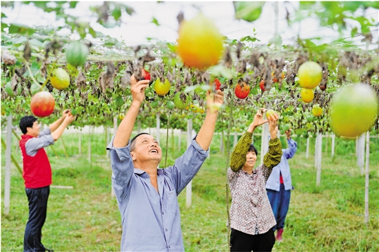 9月16日,长兴县煤山镇抛渎岗村吊瓜帮扶基地内100多亩吊瓜喜获丰收,低收入农户和党员志愿者正忙着采摘、分拣成熟吊瓜。近年来,煤山镇发展“公司+合作社+农户”的订单农业模式,引导低收入农户进行“订单吊瓜”种植,并通过资金帮扶、技术指导、销售保障等方式,精准帮扶低收入农户稳步增收。 拍友 吴拯 摄 |