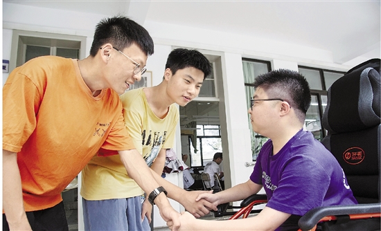 同学们主动与沈博杰握手,顺利接过爱心接力棒。