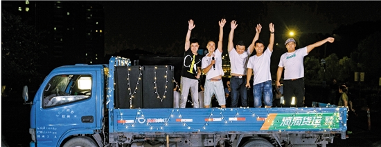演唱会接近尾声时,几位货车司机齐上台,合唱《追梦赤子心》。 本报记者 姚颖康 吴佳妮 摄