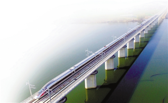 一列动车组列车在日兰高铁山东临沂境内行驶。2019年11月26日,日兰高铁日照至曲阜段开通运营。高铁开进沂蒙山,为沂蒙革命老区的旅游产业发展注入了新活力。 新华社发