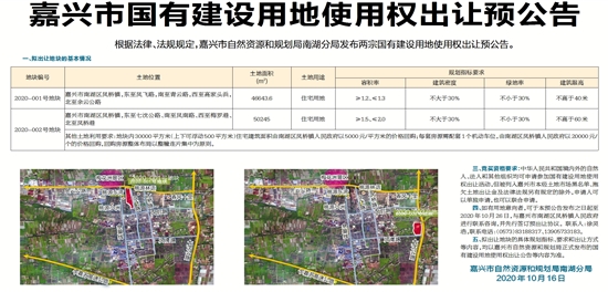 根据法律、法规规定,嘉兴市自然资源和规划局南湖分局发布两宗国有建设用地使用权出让预公告。