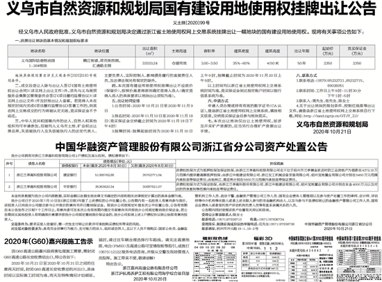 中国华融资产管理股份有限公司浙江省分公司资产处置公告