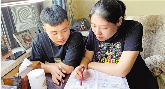 裘海璇在辅导芳世魁功课。 本报记者 王晨辉 摄