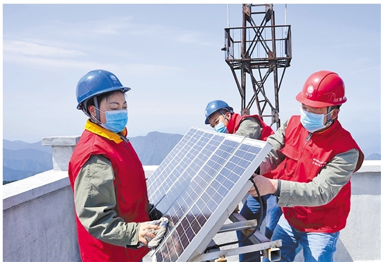 紧水滩电厂应急抢险服务队在凤阳山水情遥测中继站开展现场检修 陶萱 摄