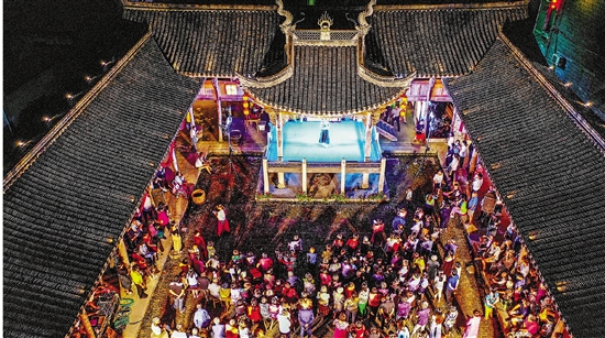 9月4日,仙居县湫山乡四都村文化礼堂文艺演出,吸引了大批观众。