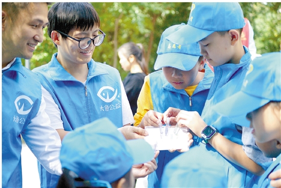 | “小小议事员”共护水环境 近日,湖州市生态环境局南太湖新区分局、仁皇山四社区、大鱼公益联合开展“小小议事员”共护水环境实践活动,来自爱山小学教育集团的学生们通过实地考察、采集水样、水质监测等实践,进一步提升了爱水、节水、护水环保意识。 杨斌英 摄 |