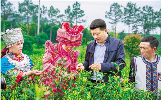 ▲受捐地茶农受邀到黄杜村培训,盛阿伟(右二)为他们讲解。