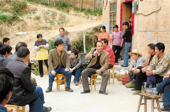 黄坚钦教授(中)在桐庐指导林农种植山核桃。