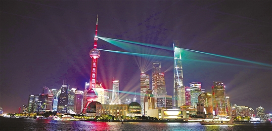 11月4日,进博会主题光影秀在黄浦江畔亮相。新版光影秀通过增加表演灯光数量,调整位置,实现两岸楼宇灯光、激光灯、光束灯与音乐融合。
