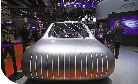 11月5日在进博会技术装备展区拍摄的瑞声科技的智能座舱方案。 新华社记者 李任滋 摄