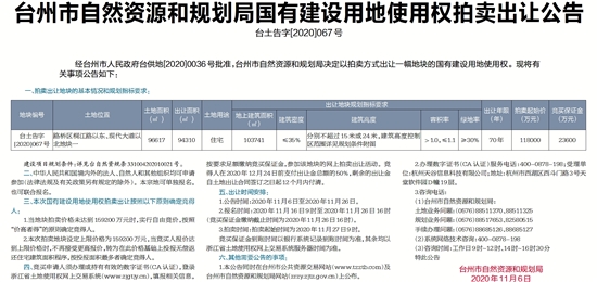 台州市自然资源和规划局国有建设用地使用权拍卖出让公告