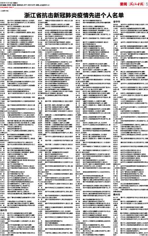 浙江省抗击新冠肺炎疫情先进个人名单