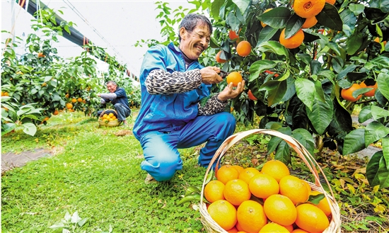 11月16日,象山县“红美人”柑橘成熟,迎来全面开摘。“红美人”是象山县经历20年自主选育的优质精品杂柑,皮薄肉多、糖度高。通过种植“红美人”,象山县4000户橘农户均收入12万元以上。 本报记者 贺元凯 应磊 摄 |