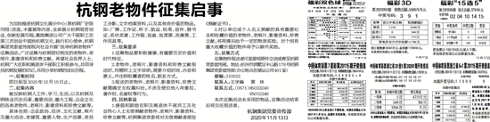 为加快推进杭钢文化展示中心(原杭钢厂史陈列馆)改造,丰富展陈内容,全面展示杭钢艰苦创业、创新发展历程,激励集团公司广大干部职工在第三次创业中宣扬杭钢文化、践行初心使命,杭钢集团党委宣传部现向社会开展“找寻杭钢老物件”征集活动,广泛征集与杭钢密切相关的老物件、老照片、影像资料和珍贵文献。希望社会各界人士、杭钢广大在职和离退休干部职工积极参与,共同寻找杭钢发展的印记,共同分享杭钢的成长历程。
