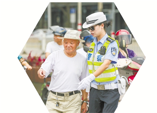 路口执勤温馨一幕 白羽 摄