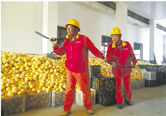 11月17日,国网常山县供电公司组织党员服务队到青石镇阁底村春良胡柚加工合作社开展用电服务。 方文军 摄