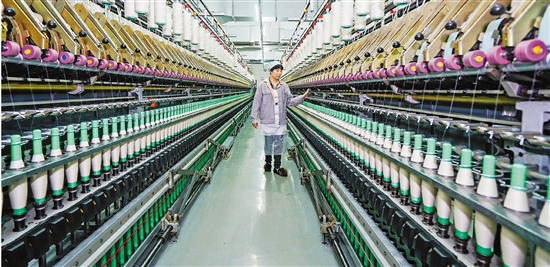 11月28日,位于德清县钟管镇的浙江依蕾毛纺织有限公司生产车间内,工人们正在开足马力生产羊绒纱。今年以来,该公司在巩固国外市场的同时,充分挖掘国内市场潜力,实现销售额逆势快速增长。 本报记者 周旭辉 拍友 吴拯 摄 |