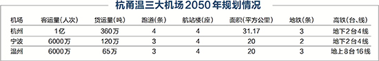 杭甬温三大机场2050年规划情况