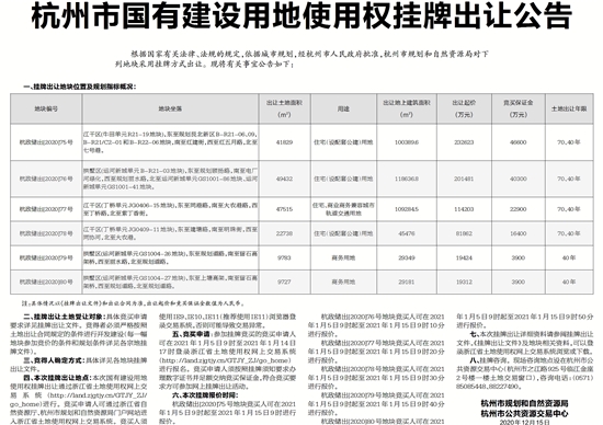 五、竞买申请:参加挂牌竞买的竞买申请人可在2021年1月5日9时至2021年1月14日17时登录浙江省土地使用权网上交易系统(http://land.zjgtjy.cn/GTJY_ZJ/go_home)进行报名。竞买申请人须按照挂牌须知要求办理数字证书并足额交纳竞买保证金,符合竞买要求方可参加网上挂牌出让活动。