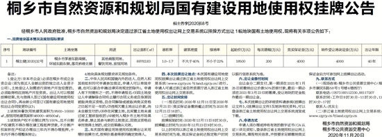 桐乡市自然资源和规划局国有建设用地使用权挂牌公告