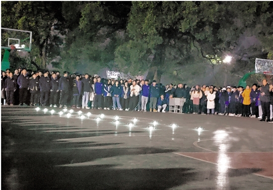 杭州电子科技大学和若联科技的联合教学团队正在为涟源四中师生进行无人机列队表演。 拍友 胡娜 摄