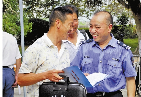 办事处工作人员与渔民亲切交流,发放渔业互助保险宣传品。(图片由浙江省渔业互保协会提供)