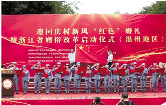 在平阳举行“迎国庆、树新风‘红色’婚礼暨浙江婚俗改革启动仪式(温州)”