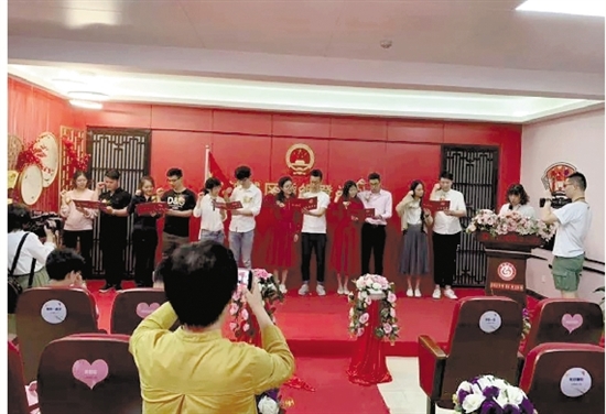 绍兴市越城区婚姻登记处为6对新人举行集体颁证仪式