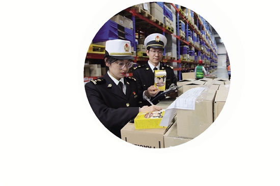 杭州海关关员在杭州跨境综试区仓库