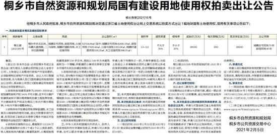 桐乡市自然资源和规划局国有建设用地使用权拍卖出让公告