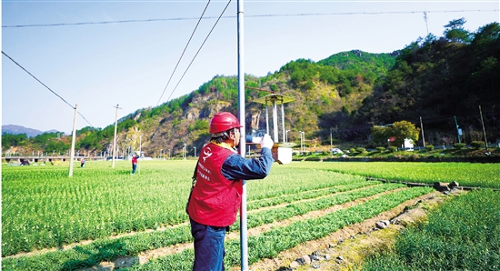 国网磐安电力红船服务队在新渥街道庄基社区田间地头帮助农户排查、解决安全用电有关问题 胡志勇 摄
