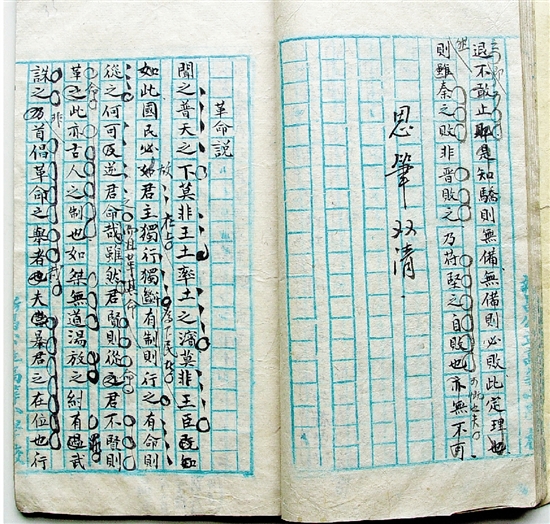 《革命说》作文手稿。梁柏台在文中抒发了忧国忧民的情感和革新自强的志向。