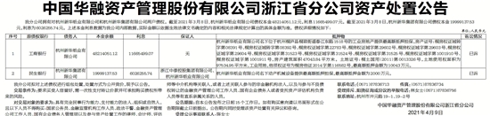 中国华融资产管理股份有限公司浙江省分公司资产处置公告