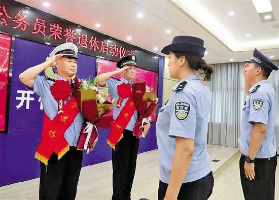 荣休仪式上,衢州的年轻同志向老同志献花。