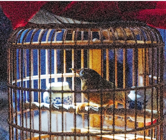 被偷捕的画眉鸟。 拍友 黄磊 摄