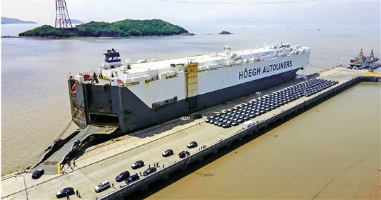 21日15时许,宁波舟山港梅山港区梅西滚装码头,550辆吉利领克01全球版汽车依次驶入“礼诺亚洲”号滚装船。这是我省今年首批滚装出口汽车,也是宁波舟山港开通的首条“宁波-比利时”吉利滚装外贸航线。 本报记者 王凯艺 拍友 杨江琦 摄 |