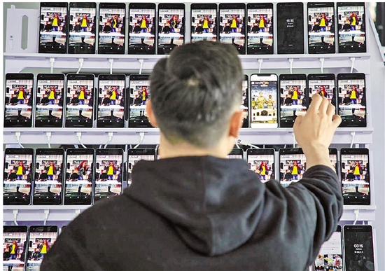 后台人员正在各个直播平台查看李辰阳和同事的直播效果。