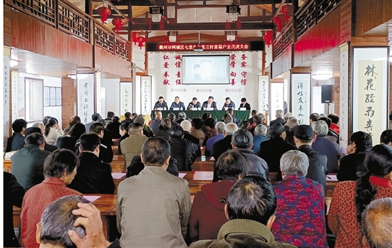 | 听民意 汇民智 聚民心 近日,柯城区七里乡七里三村召开首届户主代表大会,表彰“最美家庭”、“最美女婿”、优秀联户党员等一批先进典型,并授予为村经济发展作出突出贡献的4位企业家“荣誉村民”称号。户主大会上,村支部书记作履职报告,优秀代表进行交流发言,广大村民积极建言献策。村民们纷纷表示:“户主代表大会这样的形式好,能够积极参与到村庄建设中,政府和百姓更亲密了,干群关系也更和谐了。” 余鹏 张琦 摄 |