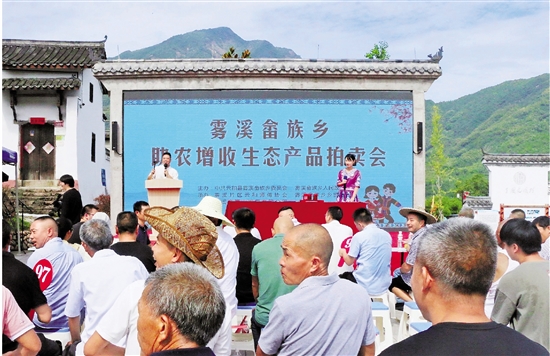 雾溪畲族乡坪垟岗村举行助农增收生态产品拍卖会,百余名竞拍人竞拍老茶叶、土鸡、雪梨、土鸡蛋等生态产品,帮助低收入农户增收。 拍友 吴梓嫣 摄