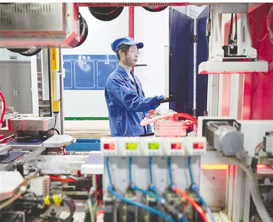连日来,南浔区南浔镇浙江晶尚新能源科技有限公司内,工人正加紧赶制发往欧洲的光伏板。企业着眼全球布局,加大科技创新力度,每天生产太阳能光伏板超1万片。目前该公司产品远销德国、英国等60多个国家及地区。 张斌 摄