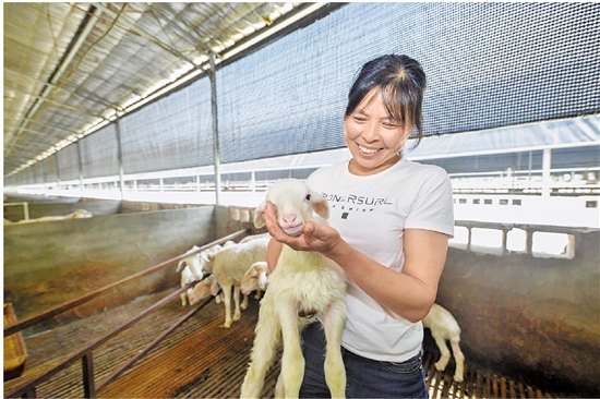 ▲唐红抱起自己饲养母羊产下的小羊羔十分欣喜。