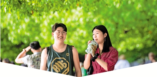 5月7日,杭州最高气温达到32℃,许多行人褪去外套,换上清凉短打衣衫。