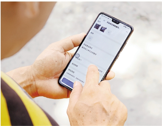 义乌市大陈镇红旗村监委主任陈朝虎将村级工程现场监督意见上传“智慧钉办”。